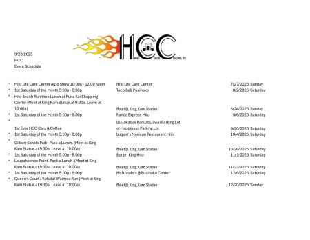 HCC 2025 Remaining Event Calendar….Cruize’s Returning! (Revised)